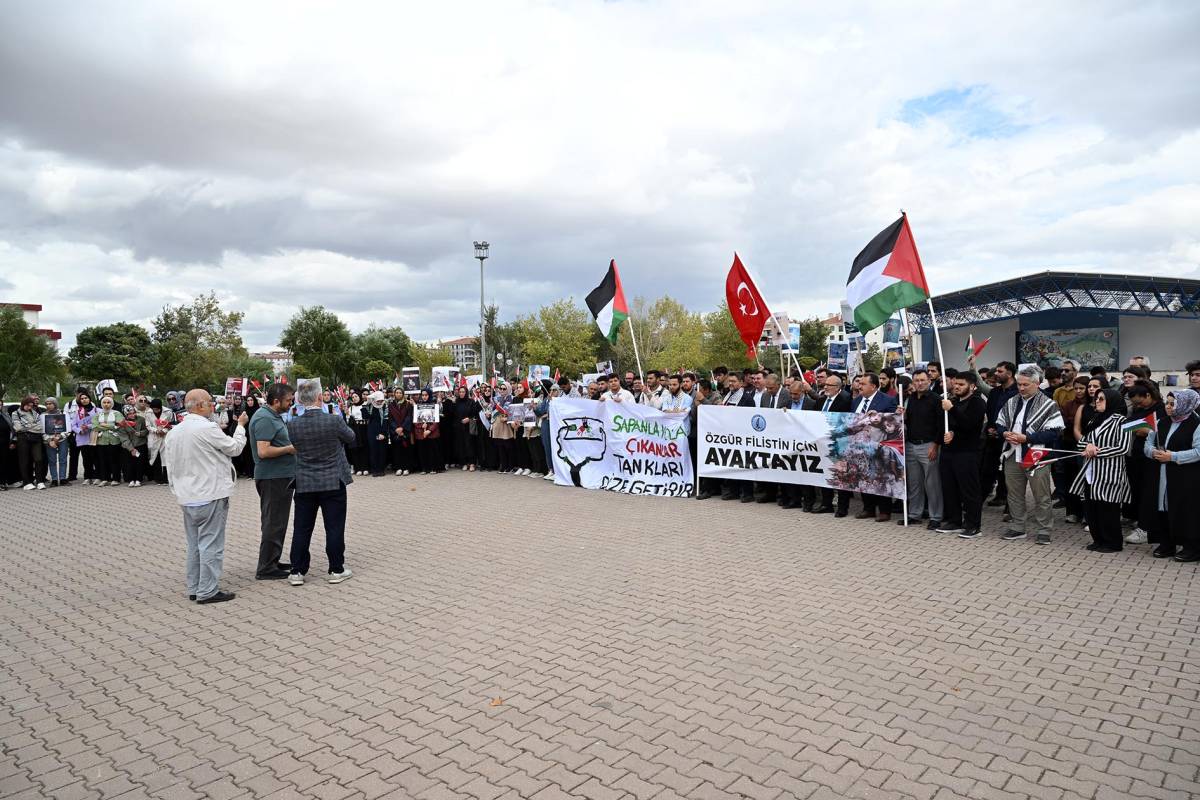 Afyon Kocatepe Üniversitesi (AKÜ) akademik ve idari personeli ile öğrencileri, İsrail’in Gazze’ye yönelik saldırılarını protesto etmek ve Küresel Sumud Filosu’na destek vermek amacıyla yürüyüşlerine eğitim-öğretim yılının altıncı gününde de devam etti.