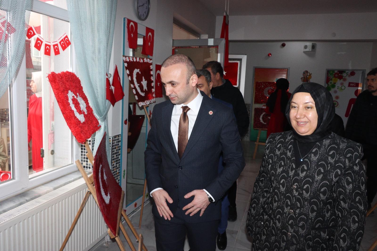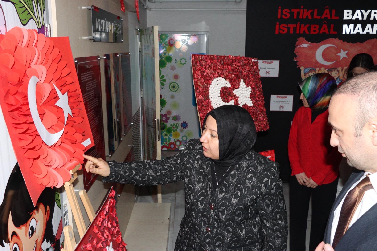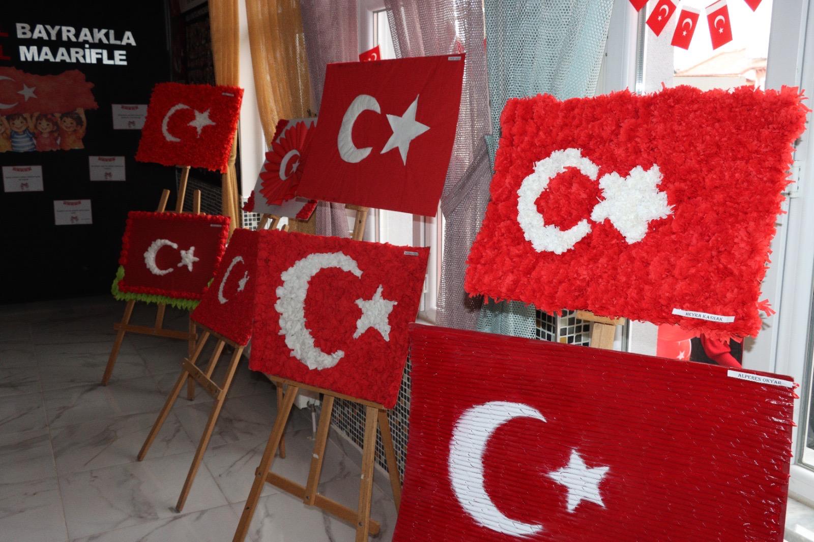 İscehisar Anaokulu öğrencilerinin öğretmenleri ve velileriyle iş birliği içinde hazırladığı sergide, farklı teknik ve materyallerle oluşturulan bayrak tasarımları yer aldı. Çocukların el emeğiyle hazırlanan bu çalışmalar, değerler eğitiminin en somut ve anlamlı örneklerinden biri olarak nitelendirildi.