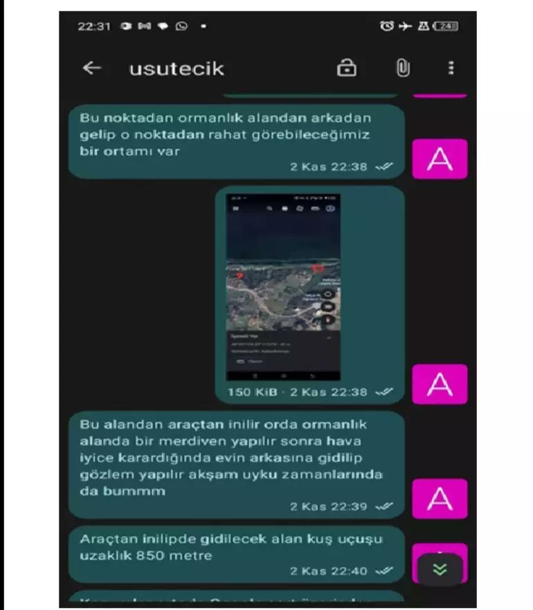 Güvenlik güçlerinin ele geçirdiği dijital materyaller ve yapılan teknik takiplerde, teröristlerin saldırı planına dair kendi aralarındaki mesajlaşmalar gün yüzüne çıktı. Teröristlerin keşif aşamasındaki yazışmalarında, “Hava kararınca evin arkasına gidilip gözlem yapılır. Akşam uyku zamanında bummm” ifadelerini kullanarak yapacakları saldırının zamanlamasını ve yöntemini tartıştıkları görüldü.