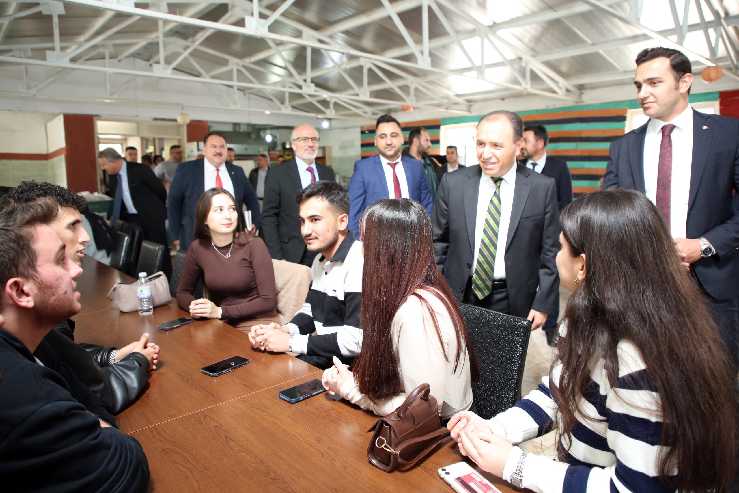 Rektör Prof. Dr. Mehmet Karakaş, Rektör Yardımcısı Prof. Dr. Murat Peker, Sultandağı Kaymakamı Hacı Demirci, Sultandağı Belediye Başkanı Mehmet Aldırmaz, Sultandağı MYO Müdürü Doç. Dr. Ercan Şimşir, AKÜ Genel Sekreteri Hasan Düzgün, Sultandağı İlçe Müftüsü Saim Özbakır, Sultandağı Devlet Hastanesi Başhekimi Dr. Veysel Muzaç ve Yapı İşleri ve Teknik Daire Başkanı Ömer Gürcan ile birlikte öğrencilerle yemekte bir araya geldi.