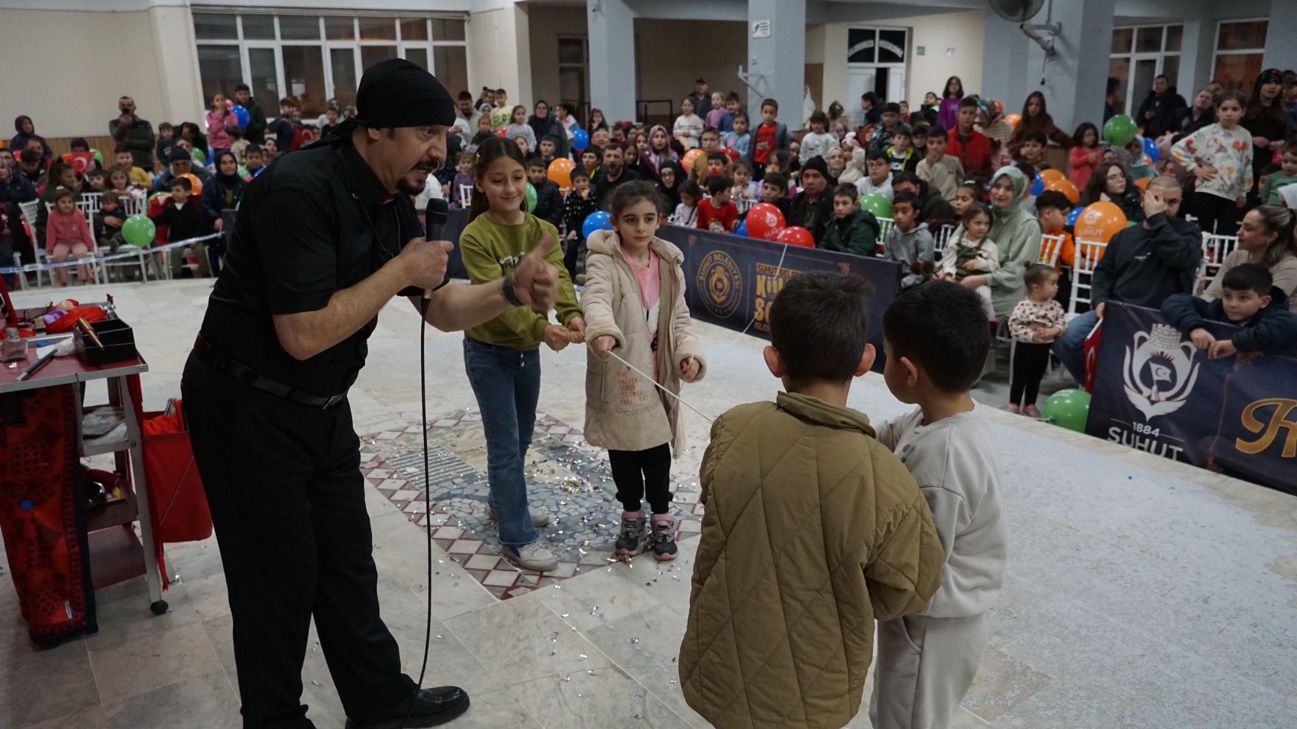 Şuhut Belediyesi Kültür ve Sosyal İşler Müdürlüğü’nün organizasyonuyla ara tatilde hayata geçirilen programda çocuklar doyasıya eğlenirken aileler de bu coşkuya ortak oldu. Belediye Düğün Salonu’nda gerçekleştirilen etkinlik çocukların yoğun ilgisiyle adeta şenlik havasına büründü. Renkli görüntülere sahne olan etkinliğin en dikkat çeken anlarından biri sahne alan Sihirbaz İbrahim Oral’ın gösterileri oldu. Oral İllüzyonlar ve kukla gösterileriyle çocukların beğenisini kazandı. Oral’ın gösteriler sırasında çocukları da sahneye davet etmesi heyecanı daha da artırdı. Etkinlik boyunca oynanan eğlenceli oyunlar ve düzenlenen çekilişlerle çocuklar hem keyifli vakit geçirdi hem de sürpriz hediyeler kazandı. Şenlik çocukların sosyal gelişimine katkı sağlarken ailelerin bir araya gelmesine de vesile oldu. Programın sonunda çocuklar ve aileleri organizasyondan duydukları memnuniyeti dile getirerek Şuhut Belediye Başkanı Muhittin Özaşkın’a ve emeği geçenlere teşekkür etti. >>>Haber Merkezi